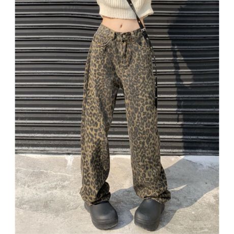 #レオパードパンツ、#ルーズシルエット、#Y2Kファッション