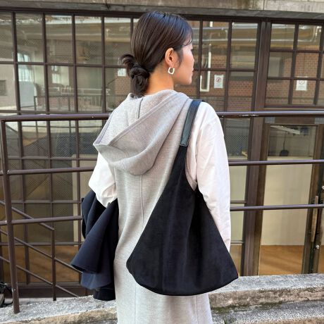 ・三角フォルムがコーデのアクセントになり、持つだけでこなれた雰囲気に