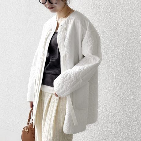 表情のあるキルティングと、丸みのあるフォルムが可愛らしいコート。