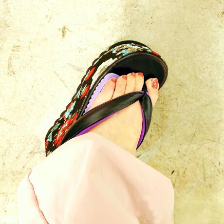鼻緒裏にも柄生地を使ったりと遊び心とレトロな雰囲気を持った1足です。