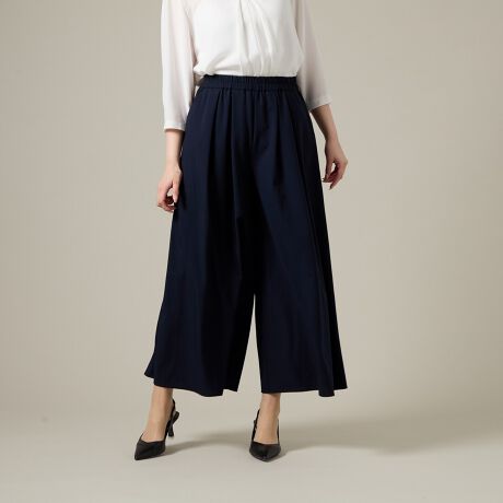 たっぷりとした分量感で、一見ロングスカートのような優雅なシルエットを描くキュロットパンツ。