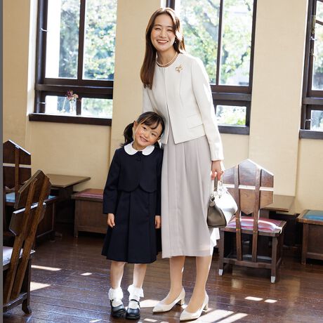 卒入学式のセレモニーや七五三シーンでもぴったりなイメージのフレアシルエット。