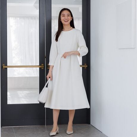 上品に広がるフレアシルエットがポイントのフォーマルワンピース。