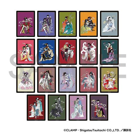 xxxHOLiC新装版書影のイラストをつかったクリアカード。枠に箔押しが施されています。全19種のうちいずれかが入っています