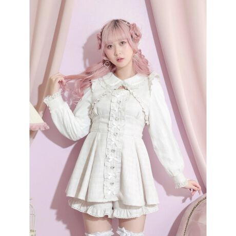 大きめ襟とフリルディテールが愛らしく、袖のレース切り替えがほどよい甘さを添えてくれます。