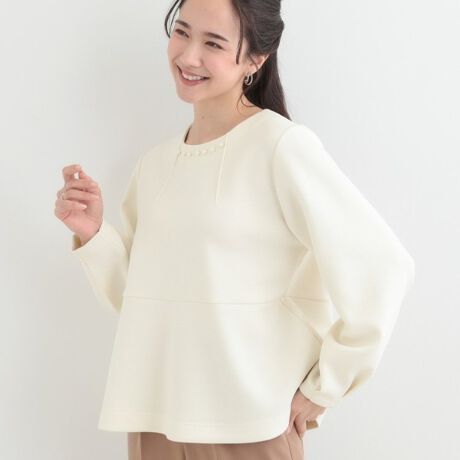 なめらかタッチダンボール フェイクパール付きペプラムトップス