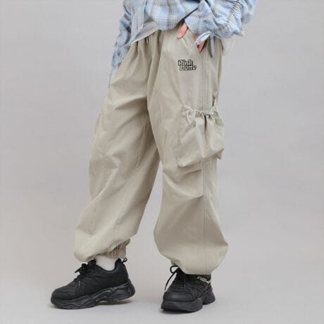 サイドのポケット部分がギャザーデザインになったガーリーなパンツ。