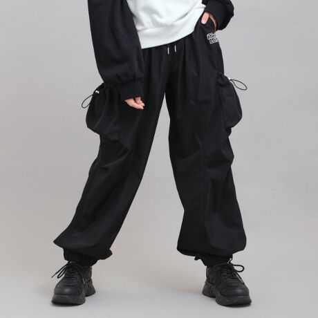 ロングパンツでも女の子っぽさを忘れないデザイン。