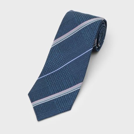 クラシックなグレンプレイドとモダンなストライプが交差するデザインが、スーツスタイルに確かな存在感を与えます。
