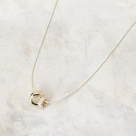 シンプルながら存在感のある二つのパーツが胸元に映えるネックレス。
