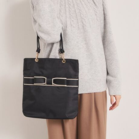 ポリエステル×合皮コンビのデザインで、フロント部分の可愛らしいリボンがポイントです。