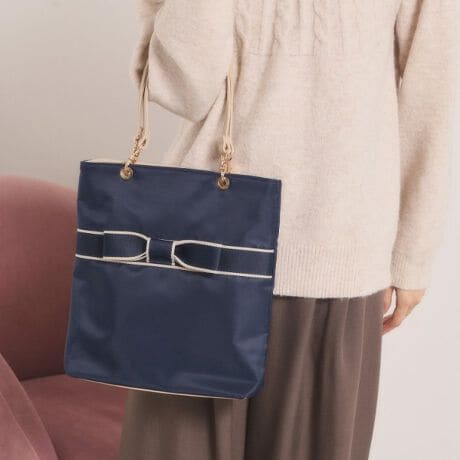 ポリエステル×合皮コンビのデザインで、フロント部分の可愛らしいリボンがポイントです。
