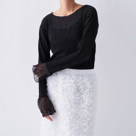 ・カーディガンやジャケットのインナーに合わせ、袖口からレースを袖口のレースを覗かせるだけで旬なスタイリングが完成。