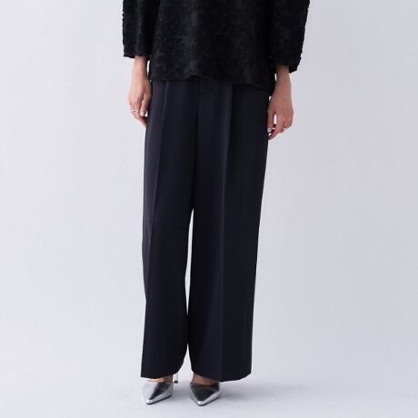 ・落ち感のある生地なので、ワイドパンツでもすっきりとした印象で穿いていただけます。