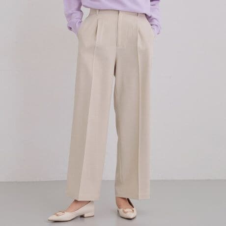 すっきり見えが魅力のワイドパンツは、センタープレスで縦ラインを強調し、上品に見える仕立てでお仕事シーンに馴染む端正な一本です。