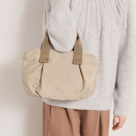 曲線の上部フチで肌当たりもよく、ガーリーコーデにぴったりのミニトート。