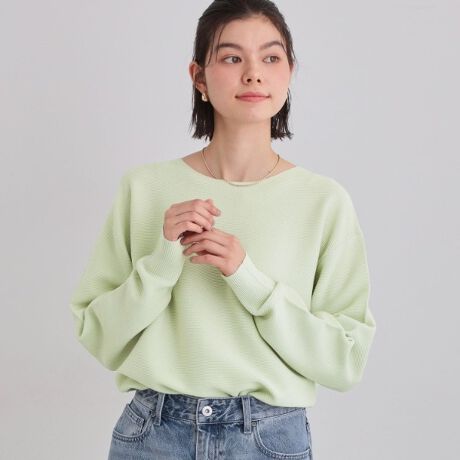 ボートネック仕様で衿元が美しく、ドロップショルダーにより肩周りにゆとりがありながら、きちんとした印象が際立つ一着です。
