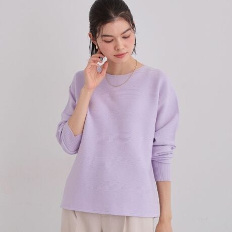 ボートネック仕様で衿元が美しく、ドロップショルダーにより肩周りにゆとりがありながら、きちんとした印象が際立つ一着です。