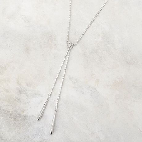 中心に結び目のような立体感のある結び目をポイントにチェーンの先端に施したドロップバーがエレガントさを演出してくれます。