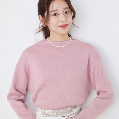 低めのモックネックはニュアンスを出しつつ首元をカバーしてくれます。