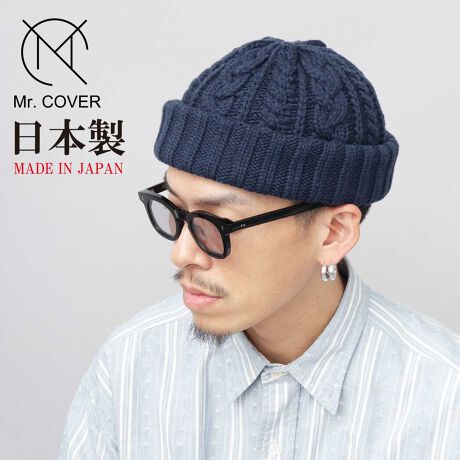 日本製 ウール混アクリル 編み替え ケーブル編み ロールキャップ ニット帽