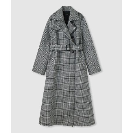 クラシックなグレンチェックを使用したベルト付きのロングコート。