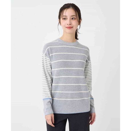 袖・裾の配色ラインやパネルボーダーがさりげないアクセントで、どんなボトムとも着合わせしやすく、上品なスタイリングに仕上がります。色違いで同型のニット【NHFCF63200】もございます。