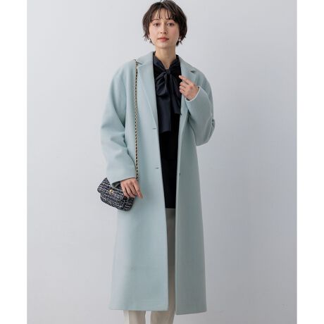 身頃の分量をしっかり取りながらも、着膨れ感のないすっきりおさまるフォルムが美しいチェスターコート。ドロップショルダーのゆったりとしたシルエットに、ラペルと袖をスッキリと細目にすることで、絶妙なフォルムバランスをつけています。重たくなりがちな冬のスタイリングに華やぎをもたらしてくれるパステルカラーとあいまって、大人らしい上品な仕上がりです。カラーは、柔らかく温かみのあるピンク(#012)、シャーベットカラーのスカイブルー(#072)、馴染みが良くスタイリングにまとまりを与えるライトグレー(#003)の3色展開です。