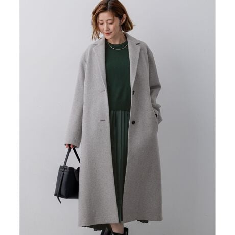 身頃の分量をしっかり取りながらも、着膨れ感のないすっきりおさまるフォルムが美しいチェスターコート。ドロップショルダーのゆったりとしたシルエットに、ラペルと袖をスッキリと細目にすることで、絶妙なフォルムバランスをつけています。重たくなりがちな冬のスタイリングに華やぎをもたらしてくれるパステルカラーとあいまって、大人らしい上品な仕上がりです。カラーは、柔らかく温かみのあるピンク(#012)、シャーベットカラーのスカイブルー(#072)、馴染みが良くスタイリングにまとまりを与えるライトグレー(#003)の3色展開です。