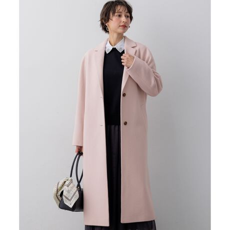 身頃の分量をしっかり取りながらも、着膨れ感のないすっきりおさまるフォルムが美しいチェスターコート。ドロップショルダーのゆったりとしたシルエットに、ラペルと袖をスッキリと細目にすることで、絶妙なフォルムバランスをつけています。重たくなりがちな冬のスタイリングに華やぎをもたらしてくれるパステルカラーとあいまって、大人らしい上品な仕上がりです。カラーは、柔らかく温かみのあるピンク(#012)、シャーベットカラーのスカイブルー(#072)、馴染みが良くスタイリングにまとまりを与えるライトグレー(#003)の3色展開です。