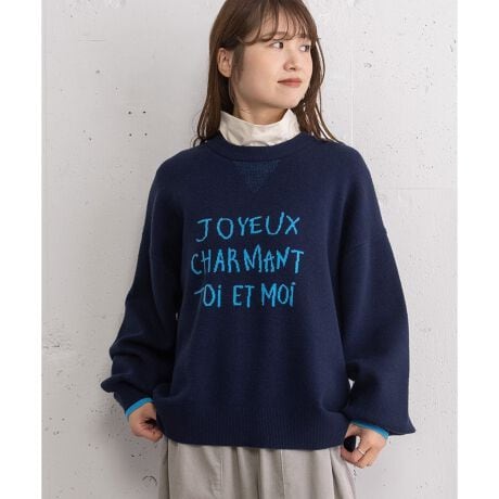 フロントに手描き風のロゴデザインを施したトレンド感のあるニット。程よいオーバーサイズシルエットでリラックス感を持たせながら、リブの切り替えでメリハリをつけスッキリとした印象に仕上げています。汗止め見えするデザインを加え、スウェットのようなカジュアルさがあるアイテムです。