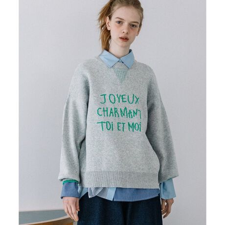 フロントに手描き風のロゴデザインを施したトレンド感のあるニット。程よいオーバーサイズシルエットでリラックス感を持たせながら、リブの切り替えでメリハリをつけスッキリとした印象に仕上げています。汗止め見えするデザインを加え、スウェットのようなカジュアルさがあるアイテムです。