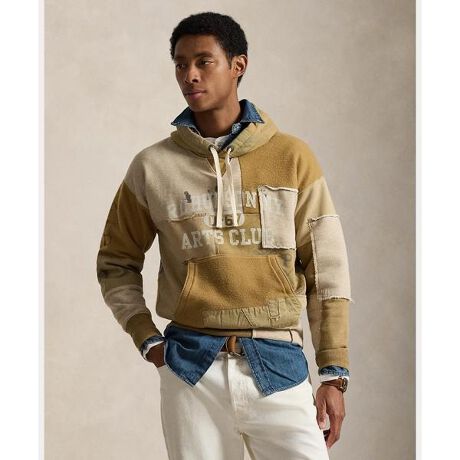 ニューヨーク州ハドソンバレーのアートシーンにインスパイアされたコレクションのひとつ。トーナルなパッチワークデザインと、フロントにあしらったシグネチャーのロゴが特徴的なフーディ。コットン混紡フリースを使用し、ワッフルニットの裏地を施したフードとツイルのディテールを取り入れたアイテム。・ヴィンテージフィット:オーセンティックなヴィンテージのプロポーションにインスパイアされたフィット、広めのドロップショルダー / 胸にかけてゆったりめのカット、短めの着丈・ワッフルニットの裏地が付いたドローストリング付きフード / リブのV字ガゼット / 長袖、リブカフス・フロント中央にR.L. Hudson N.Y. 0-67 Arts Clubのひび割れプリント / 全体にメンディングとシグネチャーのステンシル風プリント・カンガルーポケット / リブの裾 / 左裾にPolo Ralph Lauren Quality Sportsman’s Clothingのラベル。・Ralph Laurenのコットン製品を選ぶことで、環境の保護と修復に努めながら、コットン業界が今後も成長を続けられるように支援するBetter Cotton(TM)ミッションへのRalph Laurenの取り組みをサポートすることになります・本商品は物質収支方式に則って材料を調達しているため、全ての製品にBetter Cotton(TM)が含まれない可能性があります。・モデル身長185cm、着用サイズM※商品の色味は、光のあたり具合など諸条件により色感が多少異なって見える場合がございますので予めご了承下さい。※注意:柄の配置は、商品によって異なります。 【素材】・本体:綿 87%、ポリエステル 13% フード裏地:綿 100% 装飾部分を除く【生産国】ベトナム