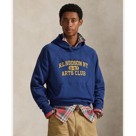 ニューヨーク州ハドソンバレーの牧歌的な田園風景にインスパイアされたコレクションのひとつであるコットン混紡フーディ。Arts Clubのグラフィックとペイントスプラッターのプリントを施すことで、アトリエで作成したような、職人技が光るルックを演出。・ヴィンテージフィット:オーセンティックなヴィンテージのプロポーションにインスパイアされたフィット、広めのドロップショルダー / 胸にかけてゆったりめのカット、短めの着丈・ワッフルニットの裏地が付いたドローストリング付きフード / 長袖のラグランスリーブ、リブカフス・フロント中央にR.L. Hudson NY. 0-67 Arts Clubのプリント / フロントにステンシル風プリント / 全体にペイントスプラッターのプリント・カンガルーポケット / リブの裾・Ralph Laurenのコットン製品を選ぶことで、環境の保護と修復に努めながら、コットン業界が今後も成長を続けられるように支援するBetter Cotton(TM)ミッションへのRalph Laurenの取り組みをサポートすることになります・本商品は物質収支方式に則って材料を調達しているため、全ての製品にBetter Cotton(TM)が含まれない可能性があります。・モデル身長185cm、着用サイズM※商品の色味は、光のあたり具合など諸条件により色感が多少異なって見える場合がございますので予めご了承下さい。 【素材】・本体:綿 84%、ポリエステル 16% フード裏地:綿 100%【生産国】バングラデシュ