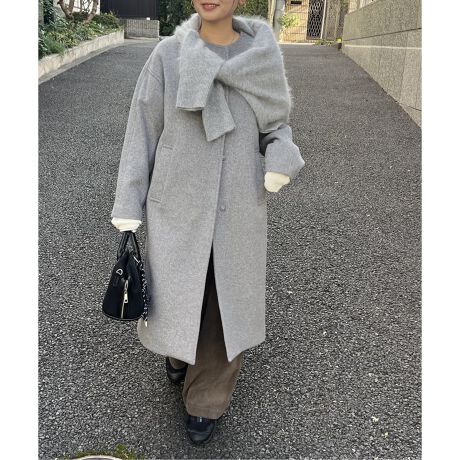 シンプルで使いやすいノーカラーコートはストールなど小物使いが楽しめるのも嬉しいポイント!