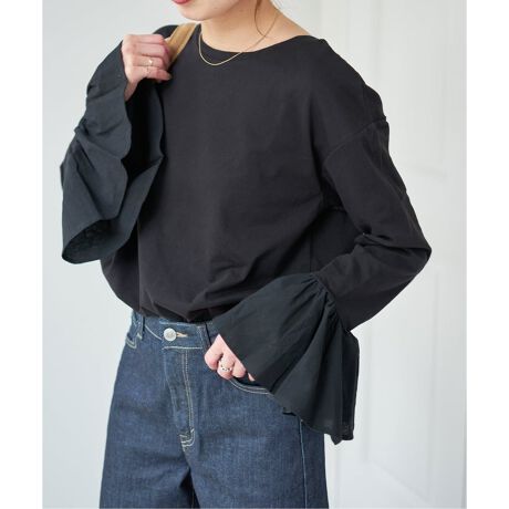 ボリューム感のあるフレアスリーブが印象的な、女性らしさとモード感を併せ持つカットソーです。