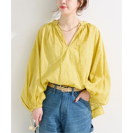 表面感ある刺繍デザインが大人可愛いブラウス。