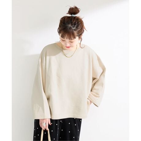 身幅があり袖も太目短めにデザインしたゆったりシルエットでレイヤードも楽しめます。袖口や裾はリブを無くしてストレートなシルエットに仕上げています。