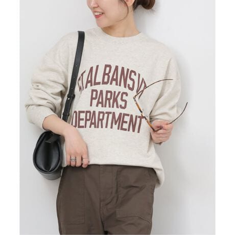 カレッジロゴ風にプリントしたスウェット。