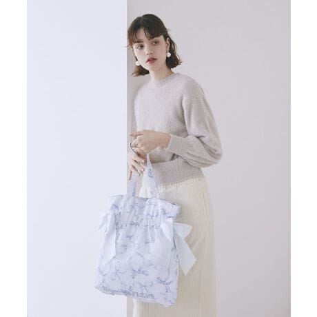 水彩調のタッチで描かれたリボン柄が大人可愛いダブルリボントートバッグ。