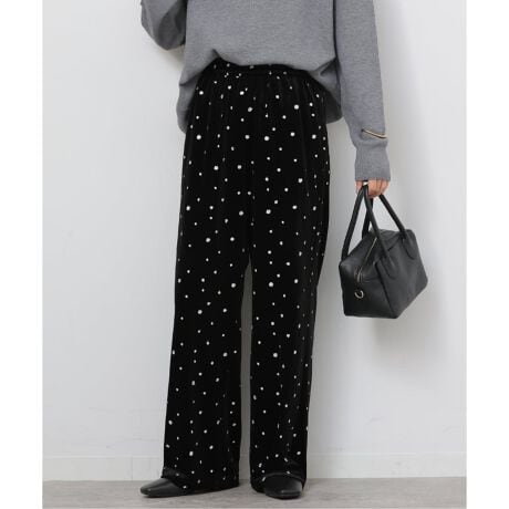 ◆上品なベロア素材にオリジナルの小花刺繍を施したパンツ