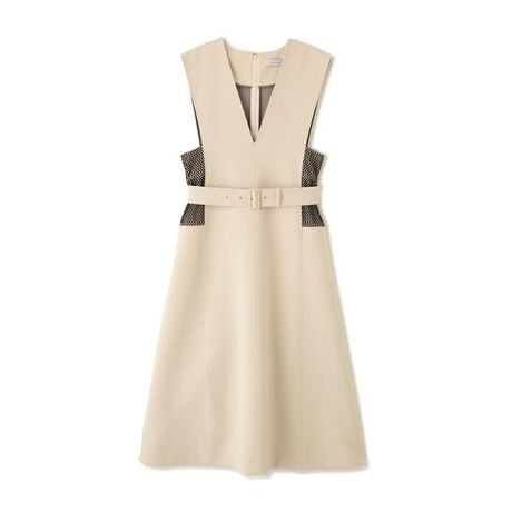 同じ生地を2枚配色で貼り合わせたボンディング素材で仕上げられたドレスです。