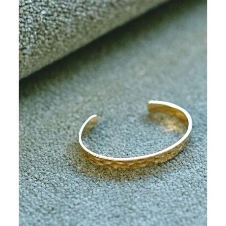 ヴィンテージ感漂うこなれたルックスのバングル。表面をハンマーで叩いたようなテクスチャーが、シンプルながらもこだわりを感じるデザイン。ボリュームのあるバングルや、ゴールドとシルバーでカラーミックスさせた重ね付けも素敵です。若干のサイズ調整が可能で、ご自身の腕のサイズに合わせてお使い頂けます◎