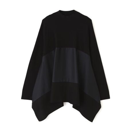 大胆な異素材切り替えがポイントのサテンコンビニット