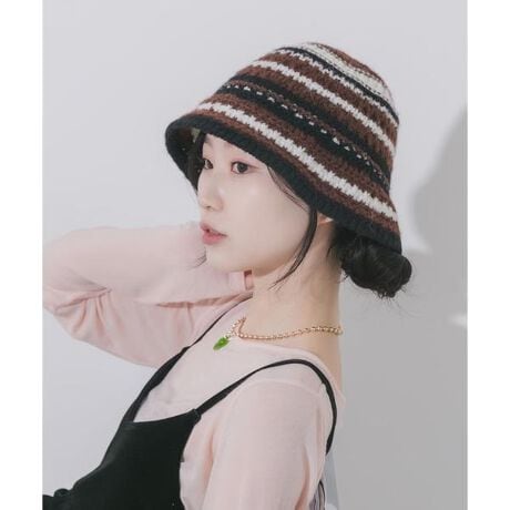 落ち着いた配色のボーダー柄がコーデのアクセントになるニットハット。