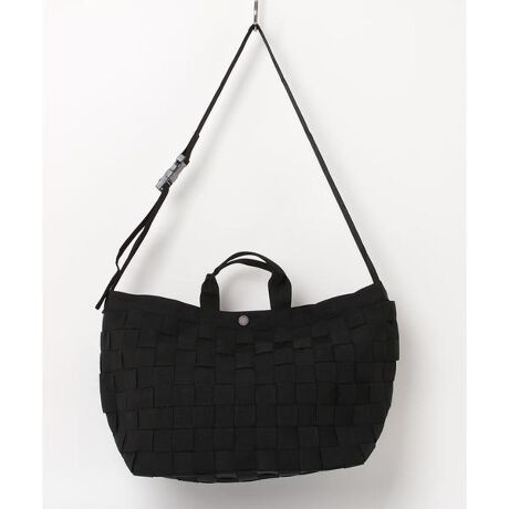 バッグのハンドルやショルダーなどに使われるナイロンテープでハンドメイドで編み上げられています。
