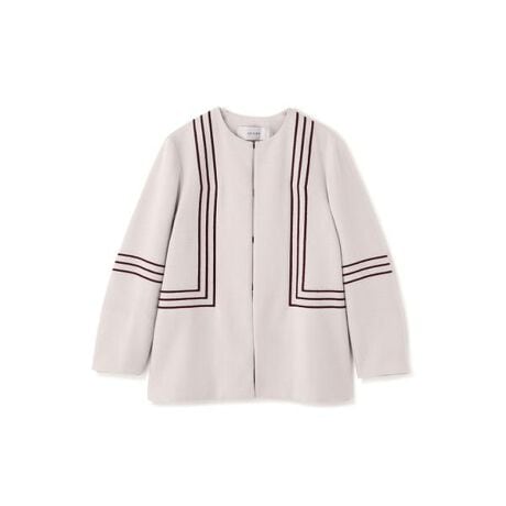刺繍でラインをいれたノーカラージャケットです。
