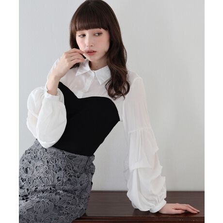 一枚で華やかな魅力のビスチェドッキングシャツ