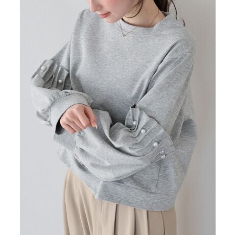 袖にたっぷりと寄せたギャザーが立体的なボリュームシルエットを生み出し、パールが上品な華やかさをプラスします。