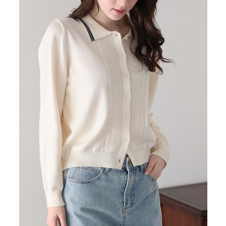 クラシカルなポロカラーに、繊細なケーブル編みを組み合わせたトレンド感溢れるカーディガン。
